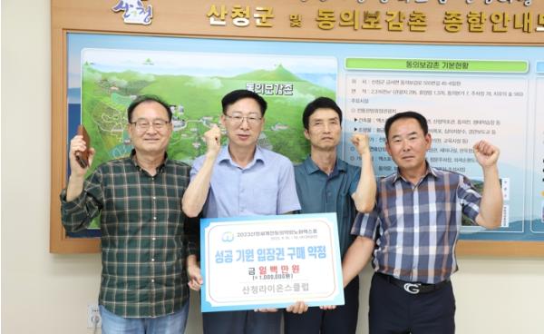 또한, 산청라이온스클럽은 이용이 회장과 관계자가 조직위를 방문해 일백만 원 상당 입장권 구매 약정을 체결했다.