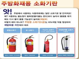 태안소방서는 추석 연휴 주방이나 식당 등에서 자주 발생하는 식용유 화재를 막기 위해 기름에 의한 화재에 적응성이 우수한 주방용 K급 소화기를 비치하도록 홍보하고 나섰다.