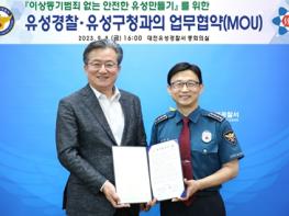 송재준 경찰서장은 ‘이번 업무협약 체결을 통해 양 기관이 유성구민의 든든한 울타리가 되어 줄 것을 서로 약속하는 자리가 됐으며, 최일선에서 지역 파수꾼으로 근무하시는 환경공무직 분들의 역할이 매우 중요함을 강조, 경찰과의 긴밀한 협조체계 유지’를 다시 한번 당부했다.