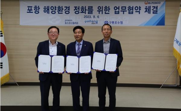 포항시는 최근 구룡포수협 회의실에서 포스코스틸리온(주), 구룡포수협과 함께 구룡포·장기·호미곶지역 해양환경 정화를 위한 상호 업무 협약을 체결했다고 10일 밝혔다.