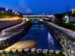 조성이 완료된 장평천 둘레길에는 아름다운 조명들을 설치하여 가을밤 산책을 즐기는 시민들로 활기를 띄고 있다. 버베나 꽃이 만개한 보?빛 길을 따라가다 보면 고즈넉한 가로수길지나 탁트인 돌다리를 만날 수 있는데 장평천의 흐름을 느낄 수 있는 장소 중 한곳이다.
