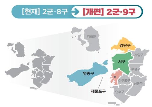 1995년부터 이어져 온 2군(郡)·8구(區)의 인천광역시 행정체제를 2군·9구로 개편하기 위한 정부의 입법 절차가 본격적으로 시작된다.