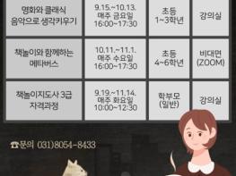 주요 프로그램은 초등학생 대상 ▲명화와 클래식 음악으로 생각 키우기 ▲책 놀이와 함께하는 메타버스와 학부모 대상 ▲책 놀이 지도사 3급 자격 과정 등이다.