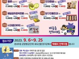 효도 선물로 보낼 수 있는 상품은 멜론(4kg), 오대 햅쌀(4kg), 곰취 호박 찐빵(20개 입), 양구전통한과(3호), 사과즙(30포) 등 5개 상품이다.