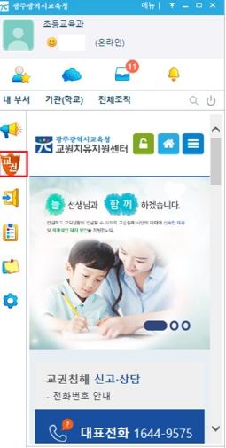 광주시교육청이 교사의 교육활동을 보호하고 이를 지원하기 위해 ‘교직원 소통 메신저(GEN)’에 ‘교권’ 창구를 개설하고 방패 모양의 바로가기 아이콘을 배치했다.