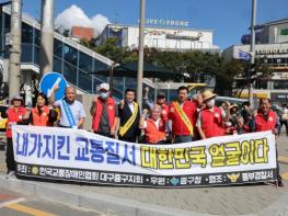 한국교통장애인협회 대구중구지회 등 유관기관 관계자 100여 명은 지난 8일 명덕네거리에서 ‘교통사고 30% 줄이기, 교통사고 예방 캠페인’을 진행했다.