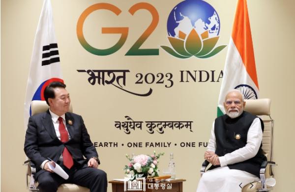 G20 정상회의 참석을 위해 인도 뉴델리를 방문 중인 윤석열 대통령은 오늘(현지시간 9. 10, 일) '나렌드라 모디(Narendra Modi)' 인도 총리와 정상회담을 가졌다.
