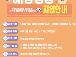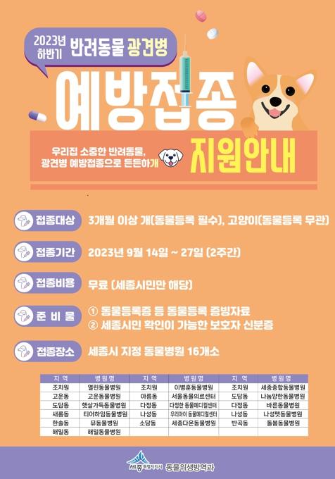 세종특별자치시가 반려동물의 야외활동이 많아지는 가을철을 맞아 광견병 예방접종을 무료로 지원한다.