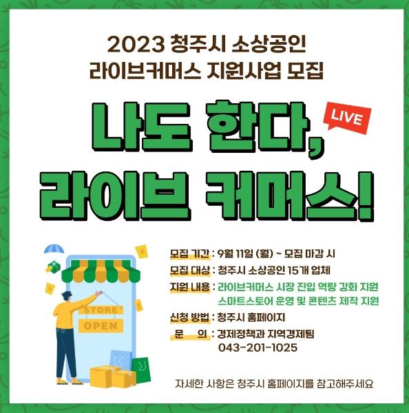 청주시는 민선8기 공약사업의 일환으로 청주시에 소재한 소상공인의 다양한 판로 개척을 지원하고 온라인 역량을 강화하고자, ‘청주시 소상공인 라이브커머스 지원사업’참여자를 모집한다고 11일 밝혔다.