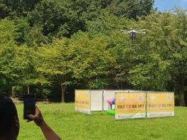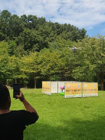 성남시는 지난 8월 탄천 물놀이장에서 국내 최초로 도입한 드론 유료 배송 서비스를 9일부터 분당중앙공원 잔디광장에서 확대 운영을 시작했다고 밝혔다.