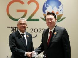 G20 정상회의 참석을 위해 인도 뉴델리를 방문 중인 윤석열 대통령은 오늘 (9. 10 일, 현지시간) 오후 '프라빈드 쿠마르 저그노스(Pravind Kumar Jugnauth)' 모리셔스 총리와 정상회담을 가졌다.