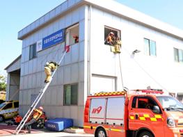 주요 내용은 ▲ 화재발생 시 긴급대피를 위한 방어적 자세 ▲ 협소 공간 진입·소방대원 구출 ▲ 사다리, 소방호스를 활용한 비상탈출 기법 등으로 진행됐다.