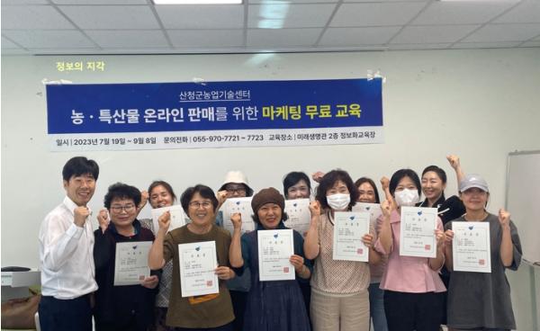 산청군은 지난 8일 농업기술센터 미래생명관에서 ‘농식품 유통 온라인마케팅 교육 수료식’을 가졌다고 11일 밝혔다.