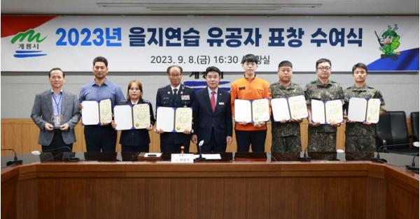 계룡시는 지난 8월 21일부터 24일까지 4일간 실시한 ‘2023년 을지연습’을 성공적으로 마무리하고, 비상 대비태세 확립에 기여한 유공자 15명에게 표창을 수여했다고 밝혔다.