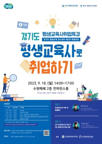 경기도평생교육진흥원은 9월 18일 ‘평생교육사 취업특강’을 수원메쎄 컨퍼런스룸에서 개최한다.