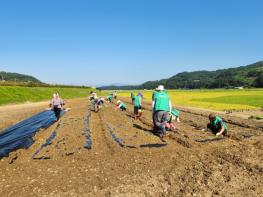고현면 새마을지도자협의회·부녀회는 지난 9일 고현면 대사리 뚝방길 새마을 경작지에서 회원 25여명이 참여한 가운데 이웃 사랑 김장김치 나눔을 위한 ‘배추 모종 심기 행사’를 실시했다.