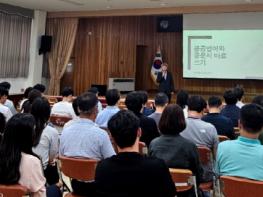 이날 교육은 청주대학교 정진수 교수를 초빙해 △공공언어의 의미 및 쉬운 언어의 요건 △공문서 정확하고 명료하게 쓰기 △보도자료 작성 시 표기 사례 등 누구나 이해하기 쉽고 바른 우리말 사용을 통해 민원인들과의 원활한 의사소통이 이뤄지도록 실무중심적 교육이 이뤄졌다.