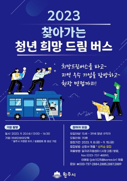 원주시가 2023 찾아가는 청년 희망드림버스 참여자를 모집한다.