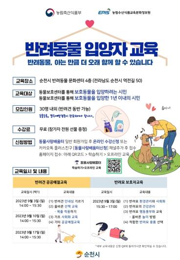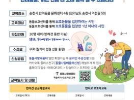 오는 17일 슬기로운 반려생활을 위한 입양자 교육이 이뤄진다. 참가자 전원에게 사료, 간식 등 소정의 기념품을 증정한다. 앞서 지난 3일과 10일에도 교육이 진행돼 큰 호응을 얻었다.