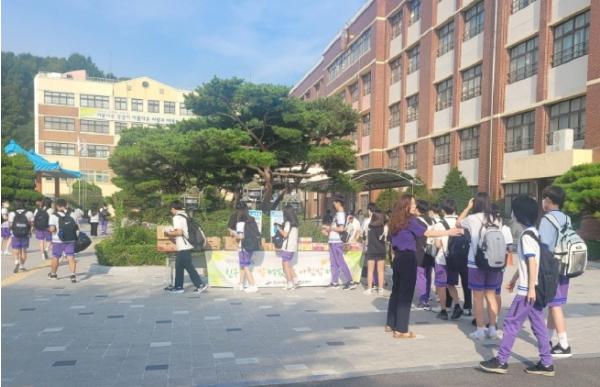 지난 12일 아침 등굣길에 실시한 이번 캠페인은 맞벌이 가정 증가, 보호자 부재 등으로 아침 결식률이 높아짐에 따라 청소년의 건강한 성장과 학습효과 증진을 위해 마련됐다.