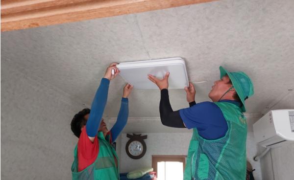 노후 조명등을 친환경 고효율 LED리모컨 전등으로 무상 교체해 밝고 환한 집 안에서 생활할 수 있도록 했으며, 화재 예방 및 안전을 위해 위험에 노출된 전기시설 점검을 함께 진행했다.
