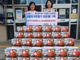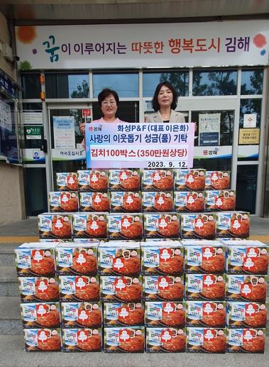 김해시 화성 P&F 이은화 대표가 추석을 앞두고 지난 9월 12일 활천동행정복지센터를 방문하여 김치5kg 100박스(350만원상당)를 관내 어려운 계층을 위해 기탁했다