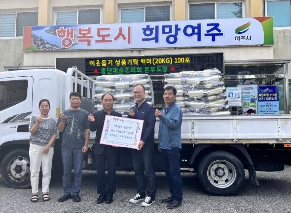 종단 대순진리회 여주본부도장(여주시 강천면 소재)에서 지난 12일 다가오는 추석 명절을 맞이하여 관내 소외계층을 위해 여주쌀 20kg 100포를 기탁했다.