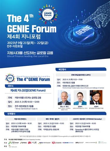 전북도는 오는 9월 21일부터 22일까지 이틀간 라한호텔에서 제4회 지니포럼(GENIE Forum)을 개최한다고 밝혔다.