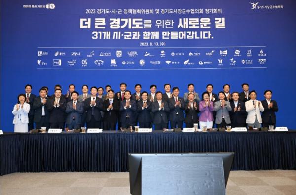 한편, 이날 같은 곳에서 경기도와 31개 시군 간 협력·협의기구인 정책협력위원회 회의가 열렸다. 신상진 성남시장과 김동연 경기도지사가 공동위원장을 맡은 정책협력위원회는 4개 조항의 현안이 담긴 합의문에 공동 서명했다.