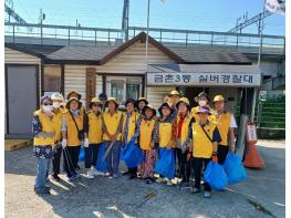 금촌3동 실버경찰대는 매월 2회 마을 청소 봉사활동을 실시하고 있으며, 이외에도 월 4회 버스정류장 청소를 실시해 지역 사랑에 앞장서고 있다.