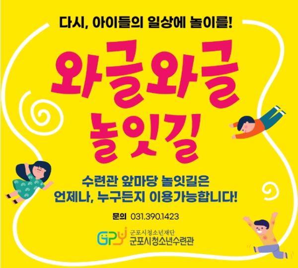 군포시청소년재단 군포시청소년수련관은 청소년들의 건강한 놀이문화 확산과 놀 권리 증진을 목적으로 수련관 앞마당에‘와글와글 놀잇길’공간을 조성했다.