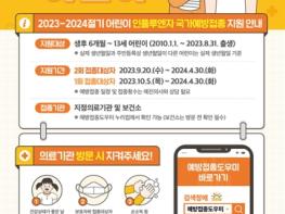 대구광역시는 9월 20일부터 어린이(생후 6개월에서 9세 미만 생애 첫 접종자)를 시작으로 임신부, 65세 이상 어르신, 취약계층에 대한 무료 인플루엔자 예방접종을 순차적으로 시행한다.