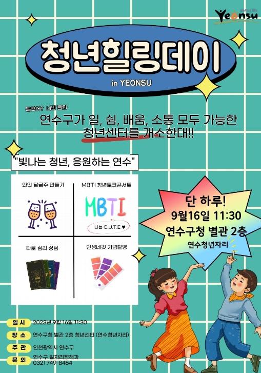 연수구 관계자는 “연수 청년힐링데이를 계기로 반복된 일상에 지친 청년들이 조금이나마 에너지를 얻고 지역사회와 교감할 수 있는 계기가 되기를 바란다.”라며, “앞으로도 청년 커뮤니티 활성화에 큰 힘이 될 연수청년자리가 청년들에게 적극 활용되길 기대한다.”라고 말했다.