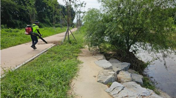 올해는 긴 장마로 잡초 및 잡목이 예년에 비해 많이 웃자라 하천을 이용하는 시민들이 많은 불편을 겪었다. 이에 시는 지난달 14일부터 풀베기 작업이 시급한 낙동강 체육공원 및 구미천 하천 둔치산책로 등을 우선적으로 시행했으며, 오는 22일까지 전구간 작업을 마무리 할 예정이다.