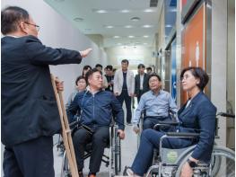 박재용 경기도의원(보건복지위원회, 더불어민주당, 비례)이 12일 경기도의회 보건복지위원회 위원들과 북부누림센터를 방문하여 휠체어 체험행사를 진행하고, 장애인의 눈높이에 맞는 경기도형 유니버설디자인 체계 구축을 강조했다.