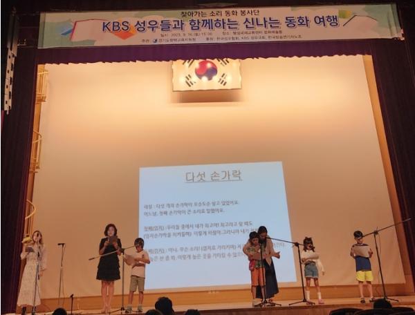 경기도평택교육지원청은 9월 16일 15시부터 90분에 걸쳐 팽성국제교류센터 문화예술동에서 ‘KBS 성우들과 함께하는 신나는 동화 여행’을 운영했다.