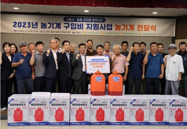 시흥시가 올해 처음 농협은행 시흥시지부 및 지역농협과 협력사업을 진행하면서 지난 14일 시흥시농업기술센터에서 농업인들에게 농기계를 전달하는 행사를 열었다. 이는 농업의 생산성을 향상하고, 농가의 소형농기계 구매 부담을 줄이고자 추진됐다.