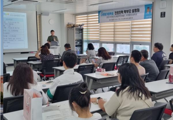 경기도안산교육지원청은 9월 16일 안산 관내 초·중·고, 대학 진학 예정인 다문화가정 학부모 대상으로 안산교육지원청 소통관에서 ‘2023 다문화가정 학생 진로,진학 학부모 설명회’를 개최했다.