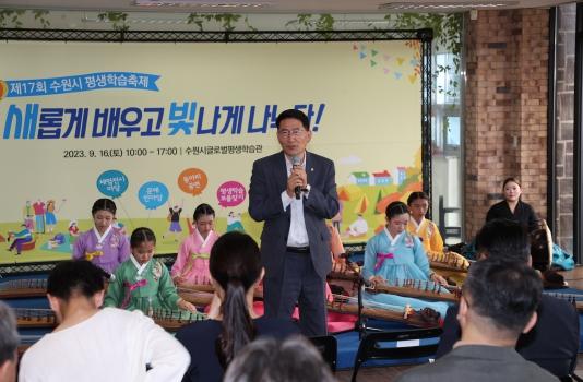 이번 축제는 김기정 의장, 이재식 부의장을 비롯한 시의원, 주요 내빈, 수원시민 등이 참석했으며,‘새롭게 배우고, 빛나게 나누다’를 주제로 △체험 전시 마당 △동아리 공연 △평생학습 보물찾기 등 평생학습 체험·전시·공연 프로그램 등이 진행됐다.