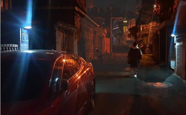 안전취약지역 센서형 LED 건물번호판은 낮 동안 태양광을 충전해 일몰 후 보행자가 접근 시 자동으로 빛을 낸다.