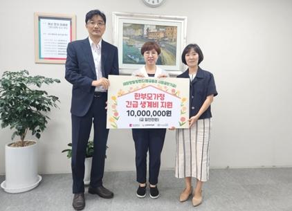 이날 전달된 1천만 원은 부산시에 거주 중인 중위소득 75% 이하 한부모가정 중 긴급생계비 지원이 필요한 위기가정 40세대에게 지원될 예정이다.