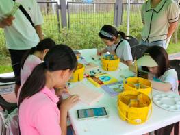 이날 체험전에는 △ 조상들의 숨결이 담긴 문인화 △ 습식수채화로 색상환 그리기 △ 셀프 인생 사진 △ 레진 공예 액세서리 제작 △ 탄소중립 실천을 위한 손수건 만들기 △ AI 드로잉 △ 색으로 만나는 천연염색 등 정통부터 디지털 미술까지 18개 체험 부스가 운영됐다.