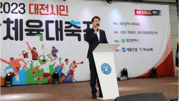 대전시의회 이상래 의장은 9월 16일 엑스포시민광장에서 열린 ‘2023 대전시민생활체육 대축전’ 개회식에 참석해 행사 준비에 노고를 아끼지 않은 대전광역시체육회 이승찬 회장과 5개구 체육회 회장 및 관계자에게 감사를 표했다.