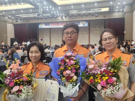 당진소방서 의용소방대연합회 송정희?박정희?심수빈 대원은 심폐소생술 분야에서 ‘이웃과 가족을 지키는 심폐소생술’이라는 주제로 탁월한 소방교육 이론과 수준 높은 발표 실력으로 전국 1위인 최우수상을 수상했다.