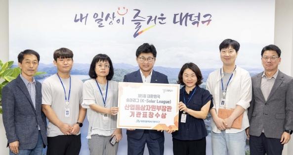 대전 대덕구는 15일 서울 LW컨번션센터에서 한국에너지공단 등 4개 기관·단체가 주최하고 지역에너지전환네트워크 등이 주관한 ‘제5회 대한민국 솔라리그’시상식에서 산업통상자원부장관상을 수상했다고 밝혔다.