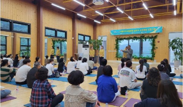 이날 참여자들은 치유의 숲에서 오감 산책, 싱잉볼 명상, 온(溫) 치유 등 산림치유 힐링 프로그램을 즐기며, 직무 스트레스를 완화하고 심리적 회복을 위한 시간을 가졌다.
