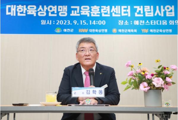 김학동 군수는 “교육훈련센터는 육상도시 예천의 위상을 더욱 높여주고, 아울러 지역의 랜드마크가 될 것이다.”며 “대한민국 육상 발전의 허브가 될 이번 교육훈련센터 건립이 성공적으로 마무리될 수 있도록 차질 없이 추진해주길 바란다.”고 당부했다.