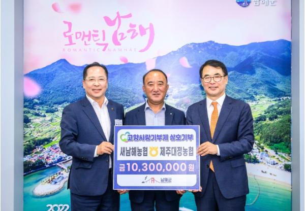 제주대정농협 임직원이 남해군에 1030만원을 기부했고, 새남해농협 임직원은 제주도에 700만원을 기부했다.