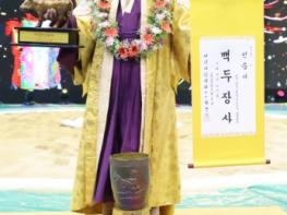18일 군에 따르면, 김진은 지난 17일 수원체육관에서 열린 2023 추석장사씨름대회 백두장사(140㎏이하) 결정전(5판3승제)에서 상대팀 오정무(문경시청)를 상대로 최종 스코어 3-2로 물리치며 개인 통산 9번째 백두장사에 등극했다.