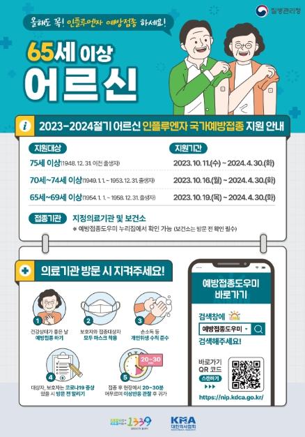또한 65세 이상 어르신은 사업 첫날 접종자 쏠림 방지를 위해 접종 시기를 분산한다. △75세 이상은 10월 11일부터 △70세~74세는 10월 16일부터 △65~69세는 10월 19일부터 접종이 시작된다.
